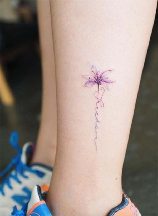 花朵纹身 女生小腿上彩色的花朵纹身图片