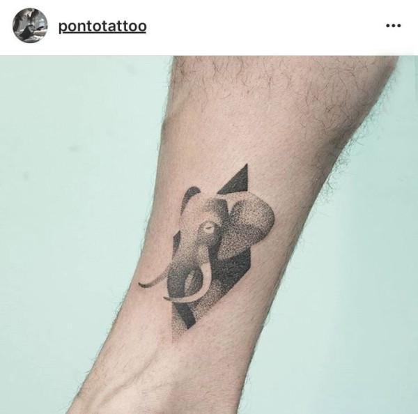 百乐动物纹身 男生小腿上菱形和大象纹身图片