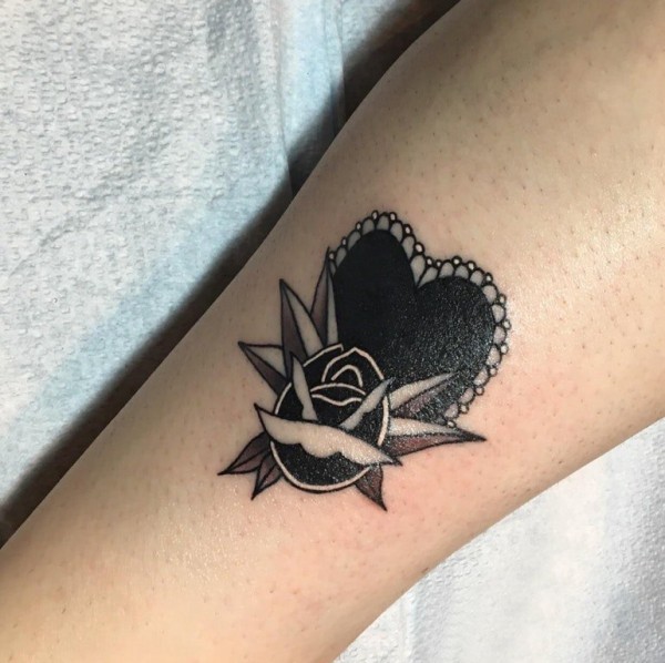 欧美小腿纹身 女生小腿上心形和玫瑰纹身图片