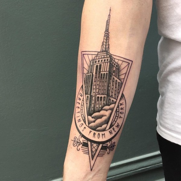 建筑物纹身 男生手臂上三角形和建筑物纹身图片