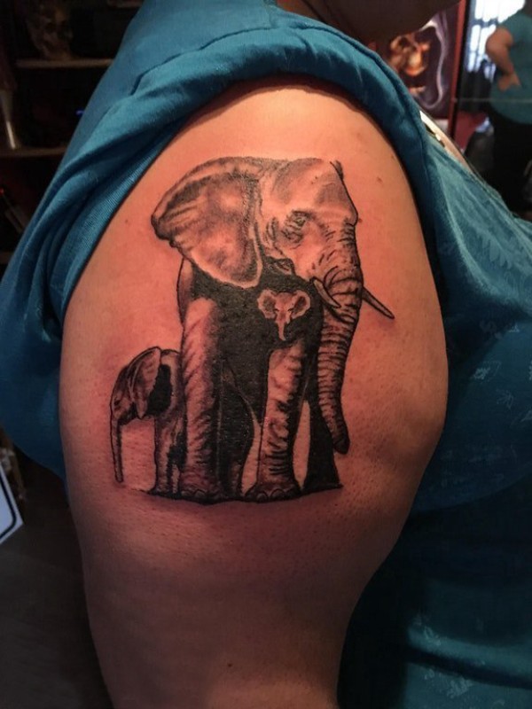 大臂纹身图 女生大臂上黑色的大象纹身图片