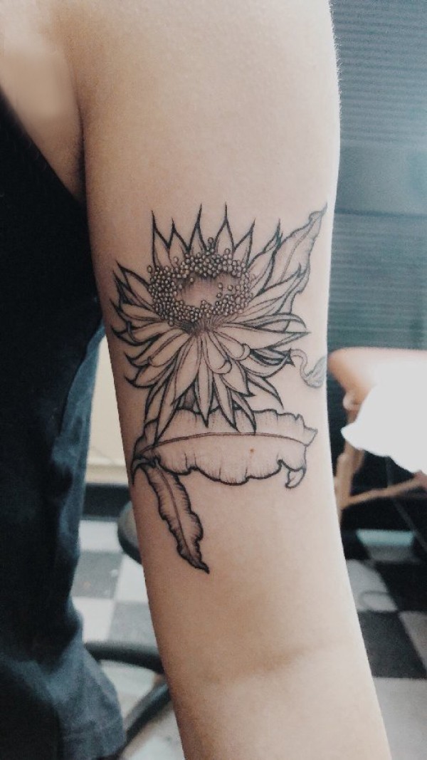 手臂纹身素材 女生手臂上黑色的蓝星花纹身图片