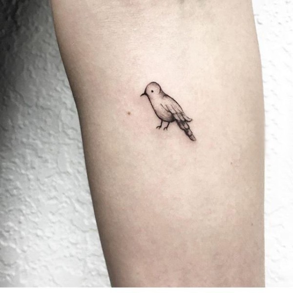 手臂纹身图案女生 女生手臂上黑色的小鸟纹身图片