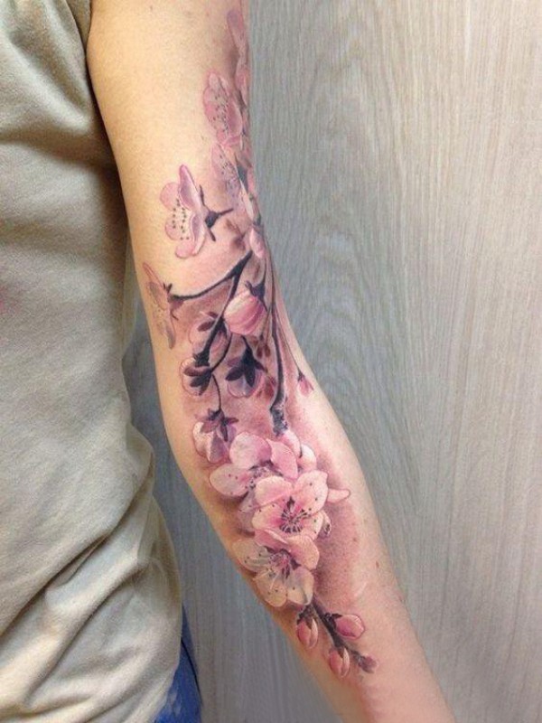 手臂纹身素材 女生手臂上彩绘的樱花纹身图片