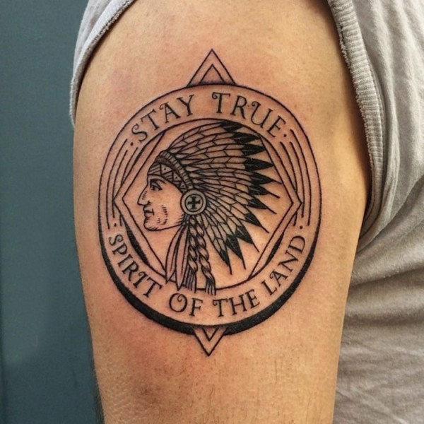 双大臂纹身 男生大臂上圆形和印第安人纹身图片