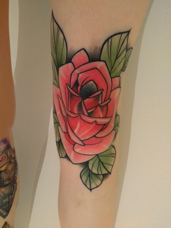 腿部纹身 女生腿部彩色的玫瑰纹身图片