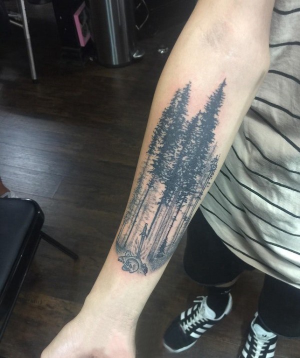 纹身风景 男生手臂上黑色的大树纹身图片
