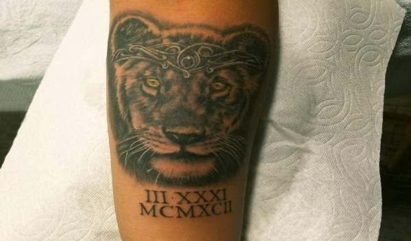 手臂纹身素材 男生手臂上英文和老虎纹身图片