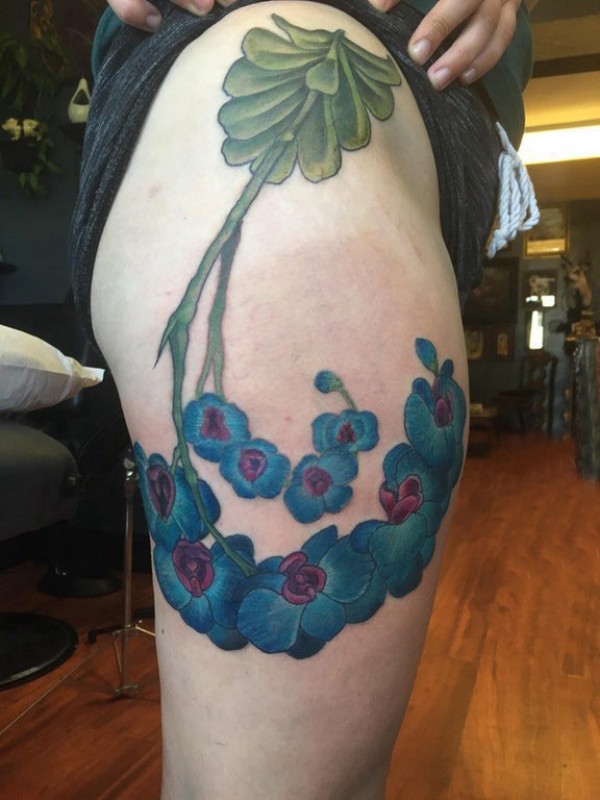 花朵纹身 女生大腿上叶子和花朵纹身图片