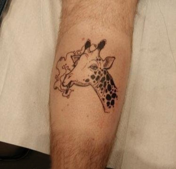 欧美小腿纹身 男生小腿上黑色的长颈鹿纹身图片