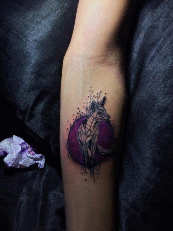手臂纹身素材 女生手臂上圆形和狐狸纹身图片