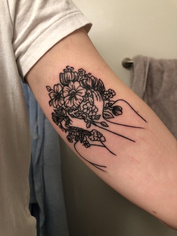 花朵纹身 男生手臂上人物和花朵纹身图片