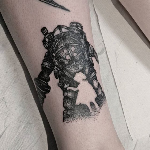 大臂泼墨金色机器人欧美纹身图案