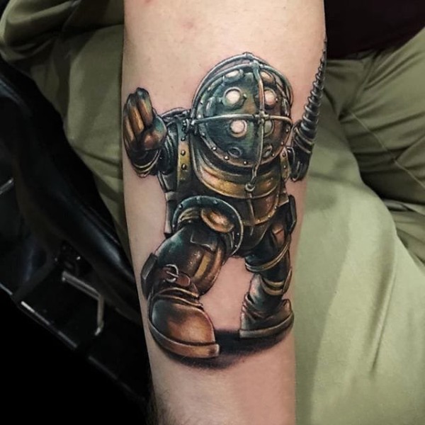 大腿纹身男 男生大腿上彩色的机器人纹身图片
