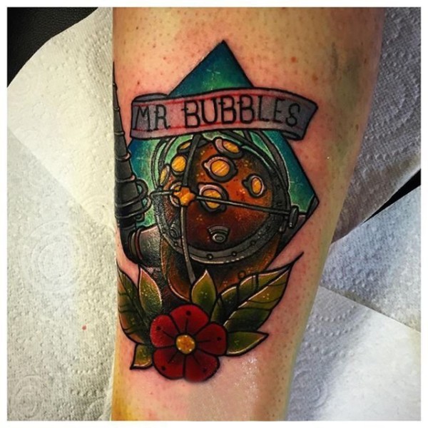 大腿纹身男 男生大腿上彩色的机器人纹身图片
