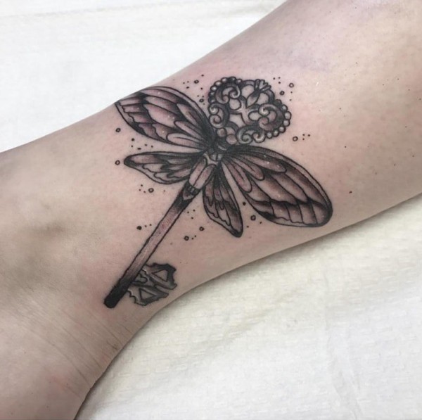 蜻蜓纹身图案 女生小腿上蜻蜓纹身图案