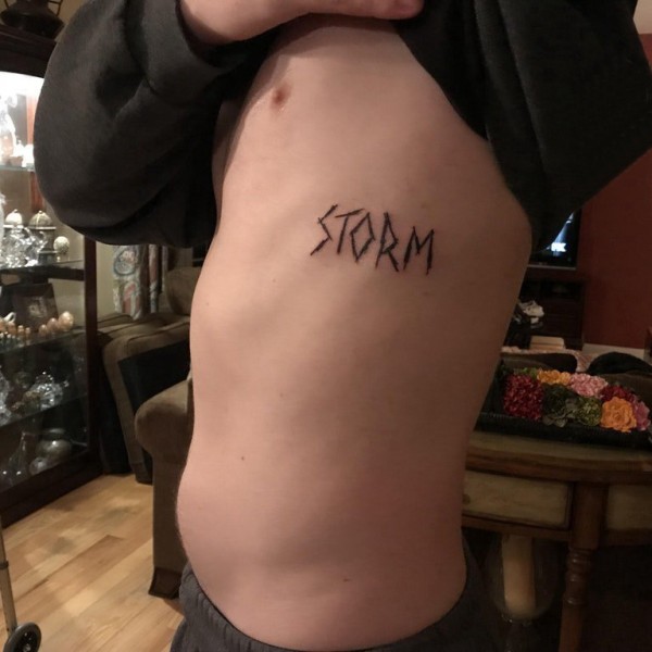 侧腰纹身男 男生侧腰上黑色的英文纹身图片