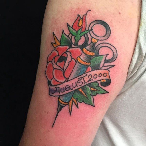 欧美玫瑰纹身 男生手臂上花朵纹身图片
