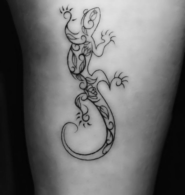 百乐动物纹身 男生大腿上黑色的壁虎纹身图片