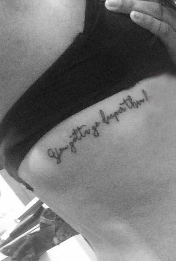 侧腰纹身图 女生侧腰上黑色的英文短句纹身图片