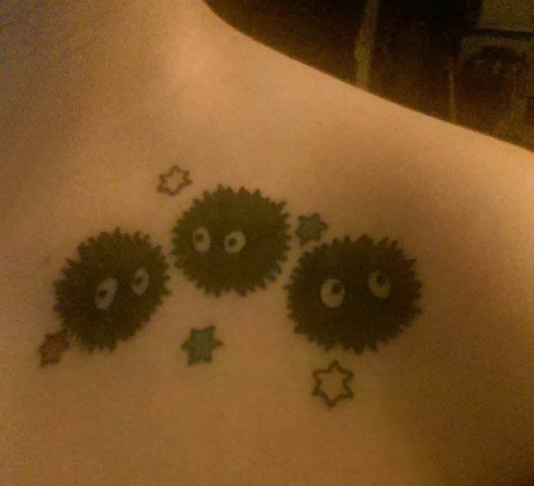 纹身精灵 男生锁骨上彩色的灰尘精灵纹身图片
