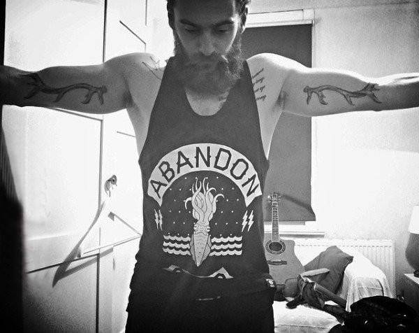 手臂纹身素材 男生手臂上三角形和鹿纹身图片