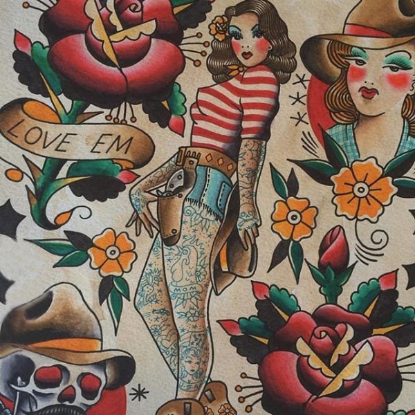 女性人物纹身图案 多款彩绘纹身素描女生人物纹身图案