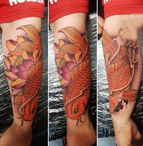 纹身红鲤鱼 男生手臂上鲤鱼纹身图片