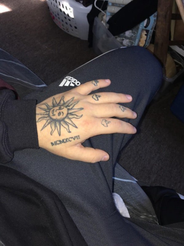 太阳图腾纹身 男生手背上太阳图腾纹身图片