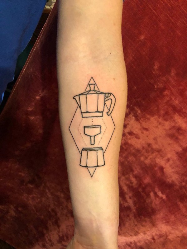 几何元素有纹身 男生手臂上黑色的几何元素纹身图片