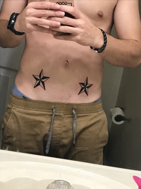 腹部纹身 男生腹部黑色的五角星纹身图片