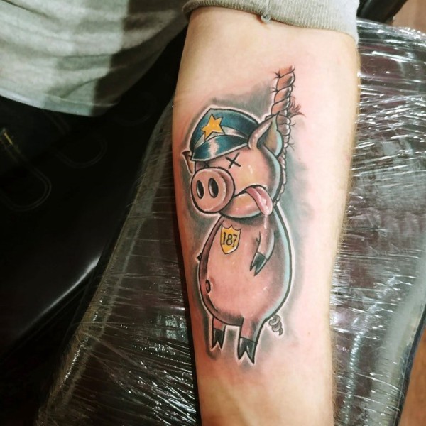 百乐动物纹身 男生手臂上彩色的小猪纹身图片