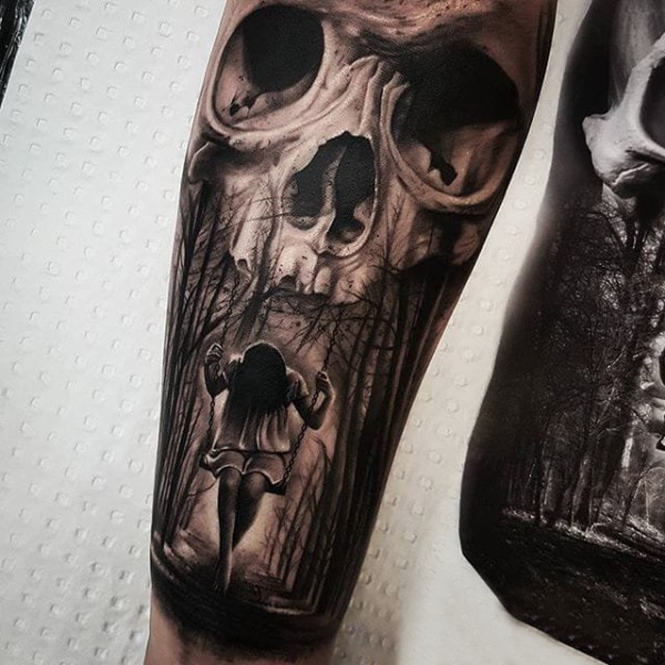 适合小臂上好看的黑灰纹身图案欣赏