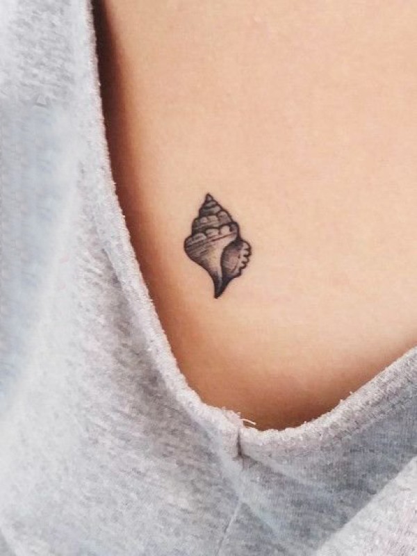 纹身锁骨女 女生锁骨下黑色的海螺纹身图片