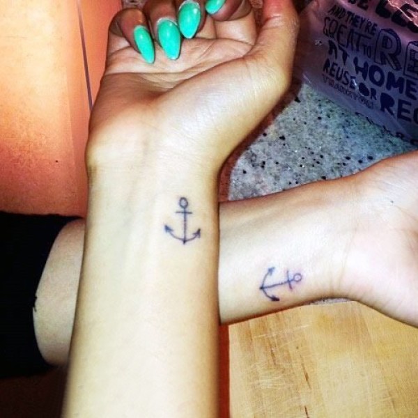 心形纹身情侣 情侣手腕上黑色的心形纹身图片