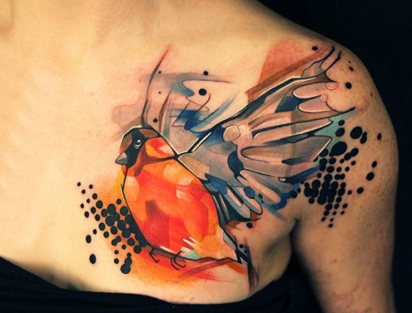 纹身锁骨女 女生锁骨上彩绘的小鸟纹身图片