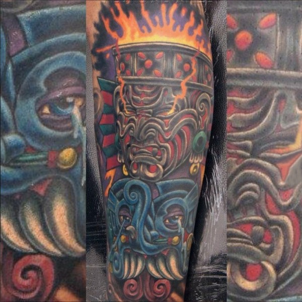 帅气的彩色花腿纹身水墨画纹身图案