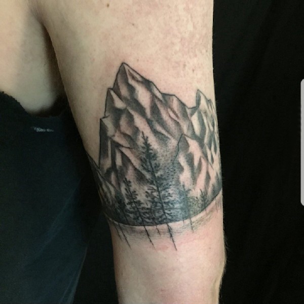 大臂纹身图 男生大臂上黑色的山脉纹身图片