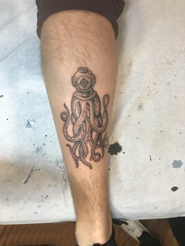 黑色章鱼纹身 男生小腿上黑色的章鱼纹身图片