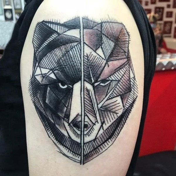 大臂纹身图 男生大臂上黑色的熊纹身图片