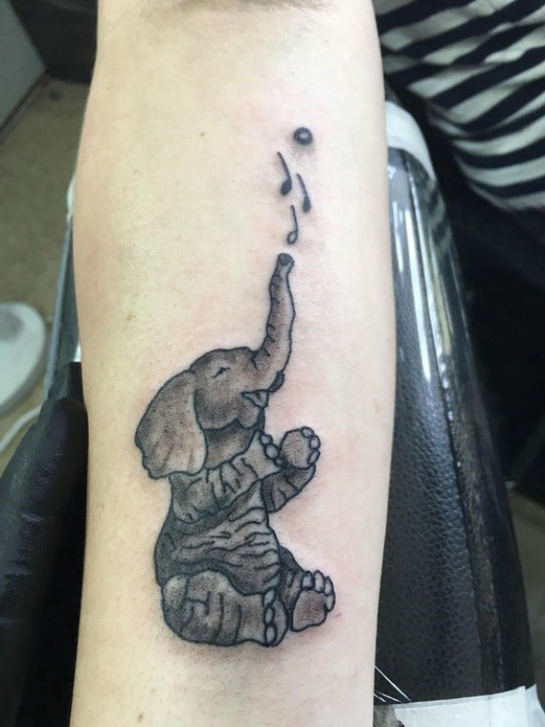 百乐动物纹身 男生手臂上黑色的大象纹身图片