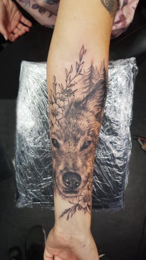 狼纹身 女生手臂上狼头纹身图片