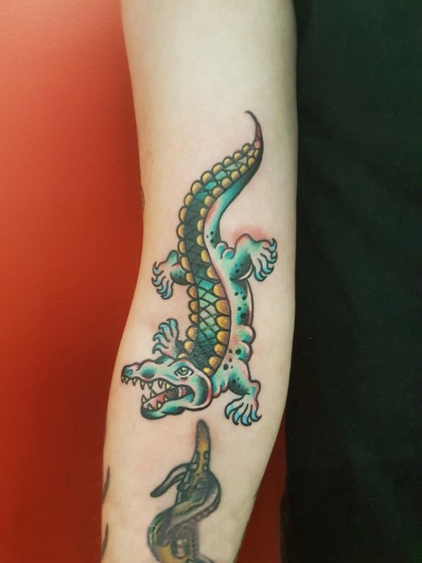 卡通鳄鱼纹身 女生手臂上彩色的鳄鱼纹身图片