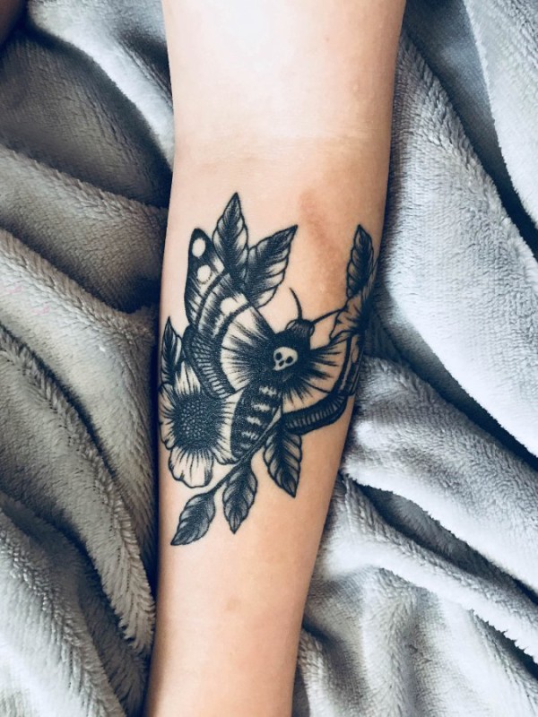 手臂纹身素材 女生手臂上植物和昆虫纹身图片