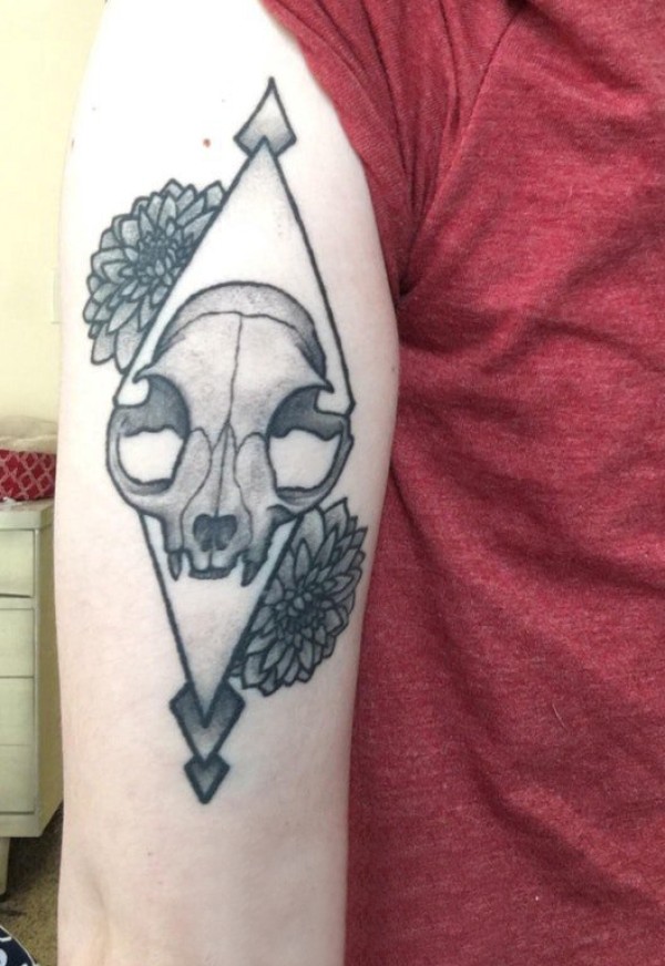手臂纹身素材 男生手臂上菱形和骷髅纹身图片