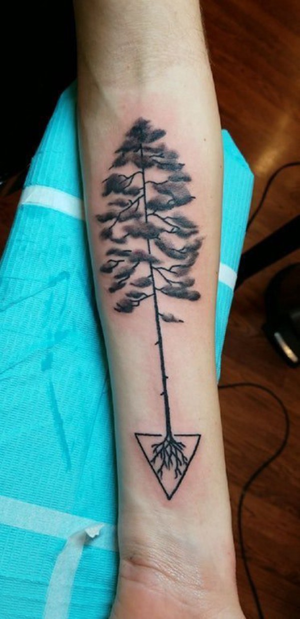 手臂纹身图片 男生手臂上三角形和树纹身图片