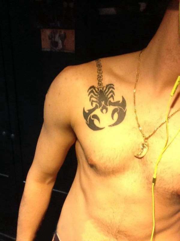 肩膀简约纹身 男生肩部黑色的蝎子纹身图片