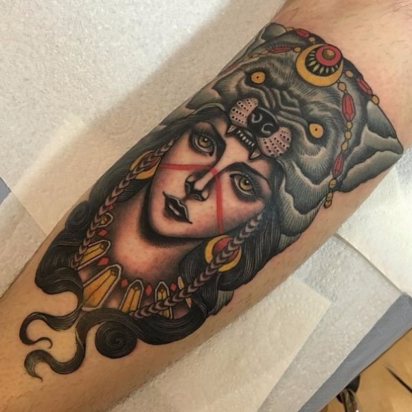 女生人物纹身图案 女生小腿上女生人物纹身图案