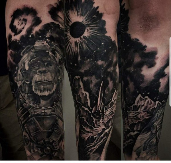 纹身黑色 男生手臂上黑色的猴子纹身图片