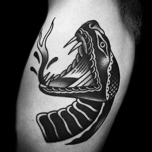 黑色和白色手臂眼镜蛇纹身动物几何点刺纹身图案